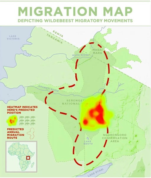 - Wildebeest migration movement: Between Lobo and Naabi Hill, wildebeest herds converge on the Serengeti’s eastern edge in January. The herds are on the move in search of good grasses for their young.